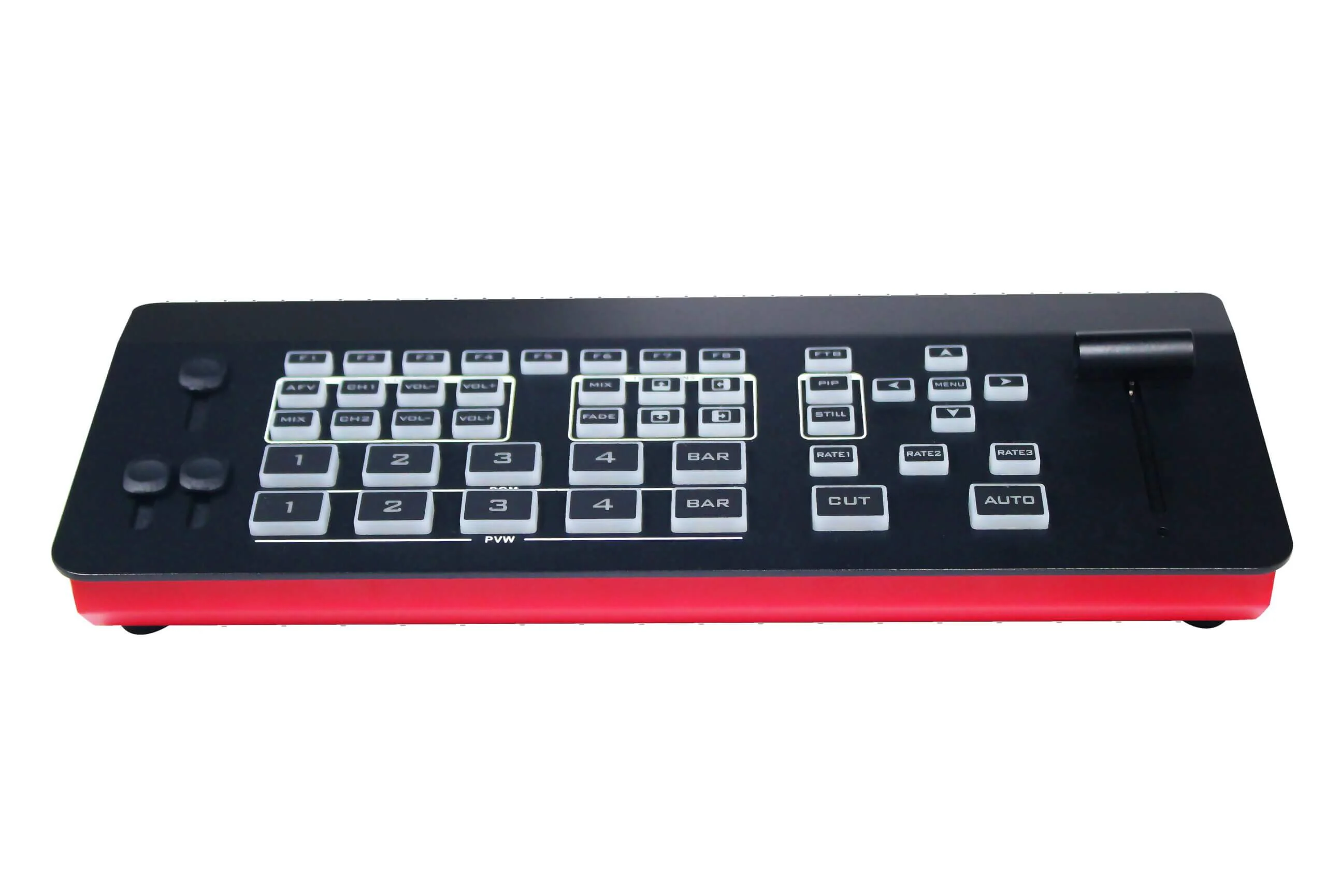 High-definition video switcher adopts a portable integrated design, metal casing, small size and light weight. Standard size: 280mm * 110mm * 47mm, which can be used for small-scale out-of-field video effects switching requirements. The device integrates multiview processor, special effect generator, audio processor, control keyboard and other common components of the switcher.